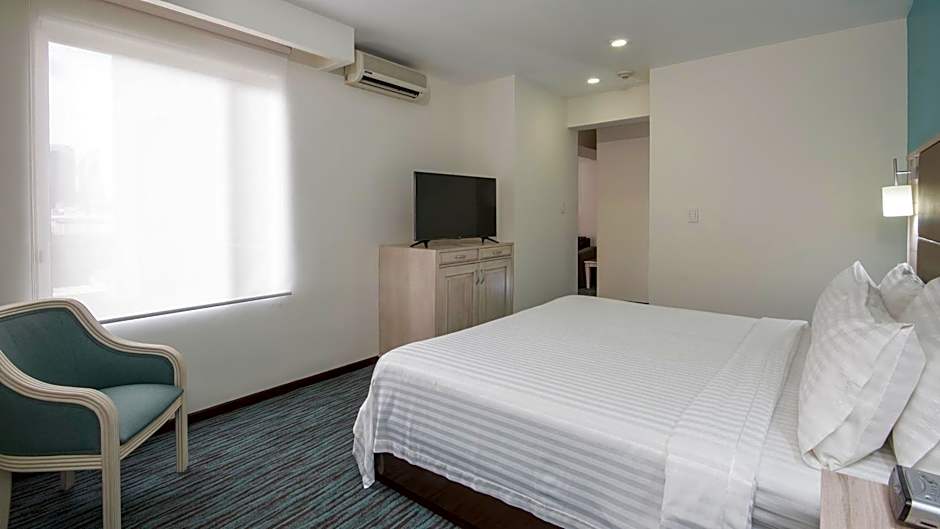 A flat-screen cable TV and seating area are featured in this suite. A microwave, fridge, and tea and coffee-making facilities are also included.